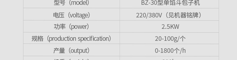 BZ-30型單餡斗包子機,可生產(chǎn)豆沙包、南瓜餅、肉包、小籠包、菜包、圓饅頭、奶黃包、叉燒包、湯包、水晶包等幾十種包餡制品。適用于個體戶、速凍食品廠、學校等各種工作場所。可滿足不同客戶群體。免費提供工藝技術。