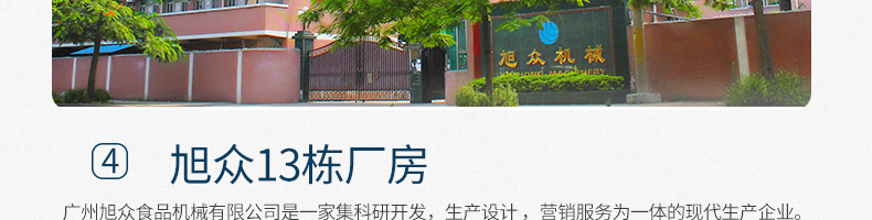 廣州旭眾食品機(jī)械有限公司是一家集科研開發(fā),生產(chǎn)設(shè)計(jì),營銷服務(wù)為一體的現(xiàn)代化生產(chǎn)企業(yè)。現(xiàn)代化生產(chǎn)車間,精湛制造技術(shù),所產(chǎn)機(jī)械歷經(jīng)市場重重考驗(yàn),不斷贏得海內(nèi)外客戶的贊譽(yù)。