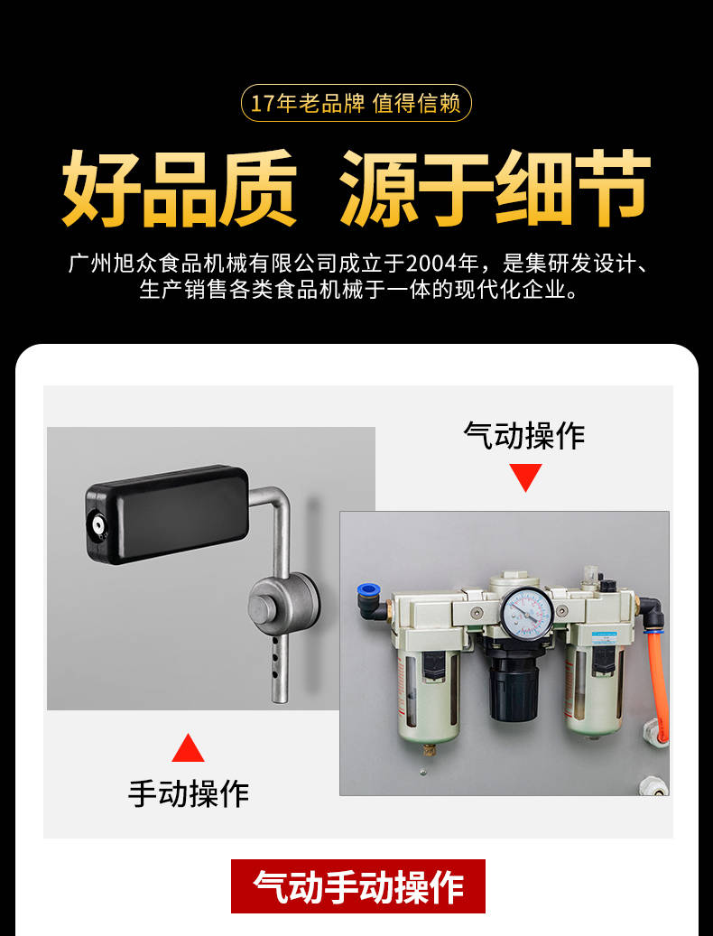 廣州旭眾食品機械有限公司是一家集科研開發,生產設計,營銷服務為一體的現代化生產企業。現代化生產車間,精湛制造技術,所產機械歷經市場重重考驗,不斷贏得海內外客戶的贊譽。