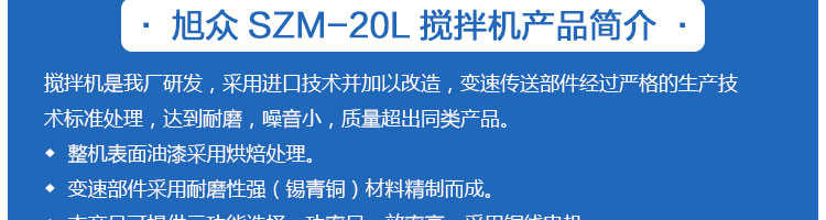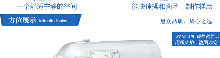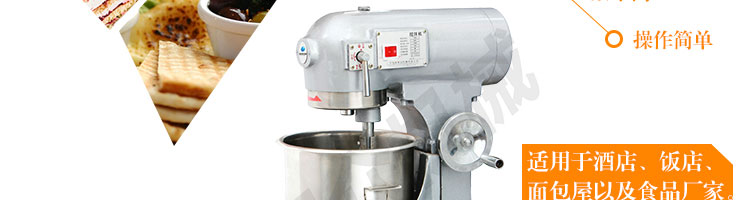 SZM-20型四功能攪拌機,可用于攪拌奶油、蛋糕液、餡料及和制面團等操作。打蛋攪拌機等作攪拌食料、揉和面團之用,是生產優質糕點的理想設備,適用于酒店、飯店、學校部門、面包屋以及食品廠家。