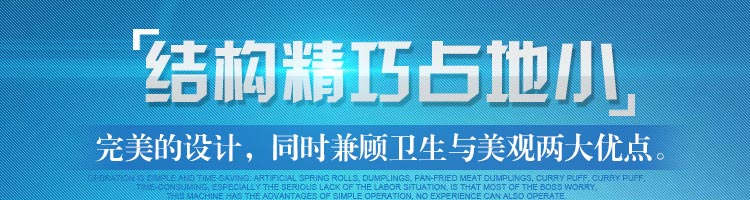 JGB-80型號餃子機,本機是一款可生產各種肉餡、肉菜混合餡、全菜餡及其他種餡餃子的設備。包制出來的餃子可蒸、煮、炸、煎等多種調理。適用于賓館、飯店、餐廳、團體食堂加工,幼兒園、速凍餃子生產。