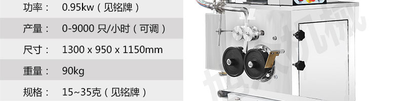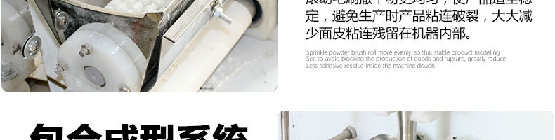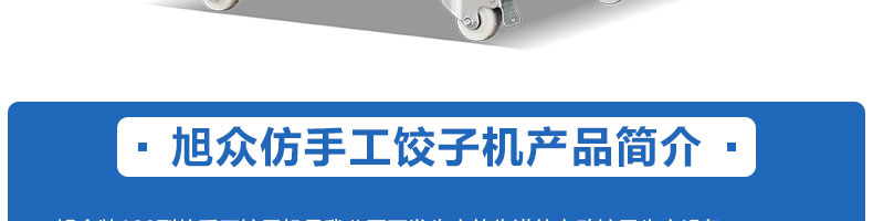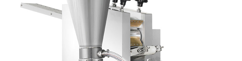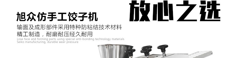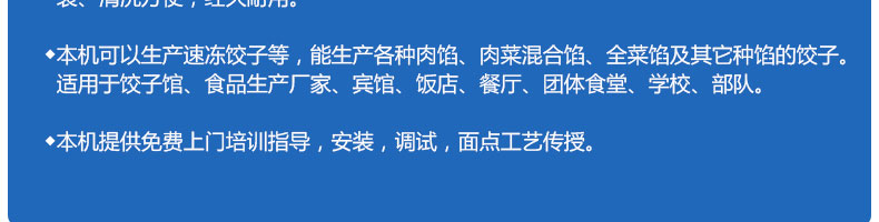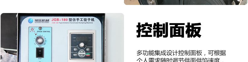 JGB-180餃子機,先進的自動餃子生產設備,包括主動壓皮部分、自動供餡部分、自動包合部分、自動成品輸送部分,并且只要更換模具,就可制鍋貼等食品。適合食品速凍廠、飯店、廠礦學校食堂等制作包餡面制品單位使用。