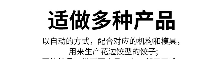 JGB-10型一體式餃子機,制皮成型一體餃子機,科技化生產/人性化設計。餃型可蒸、可炸、可煮,可適應不同場合的客戶需求。功能、智能一體,以自動化科技與過硬質量貼心服務。