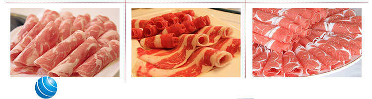 臺式全自動切片機,適合切無骨肉類和其他類似榨菜帶有彈性的食物,把原材料肉切成肉片,并可自動成卷狀。可切牛肉片、羊肉片等