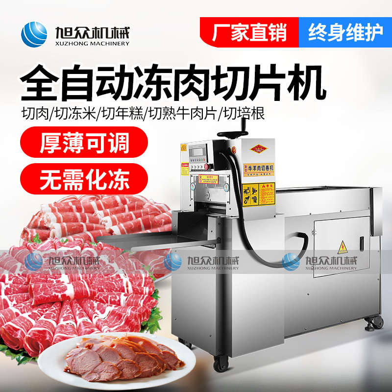 XZ-羊肉切片機,一次成片切片神器,全自動凍肉數(shù)控切片機,肉片自動打卷|厚薄可調|無需化凍|一機多用。你還用手工切片嗎?旭眾全自動羊肉切片機一機多用,輕松解決切割問題。