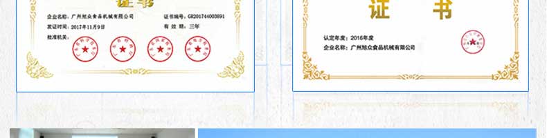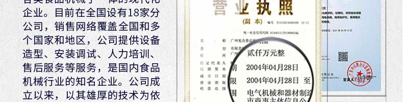 廣州旭眾食品機械有限公司是一家集科研開發(fā),生產(chǎn)設計,營銷服務為一體的現(xiàn)代化生產(chǎn)企業(yè)。現(xiàn)代化生產(chǎn)車間,精湛制造技術,所產(chǎn)機械歷經(jīng)市場重重考驗,不斷贏得海內(nèi)外客戶的贊譽。