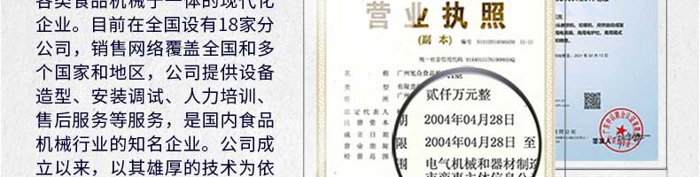 廣州旭眾食品機械有限公司是一家集科研開發,生產設計,營銷服務為一體的現代化生產企業。現代化生產車間,精湛制造技術,所產機械歷經市場重重考驗,不斷贏得海內外客戶的贊譽。