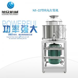 SZ-22型肉丸打漿機,本機裝肉用桶子采用不銹鋼制造,達到衛生要求,肉桶外罩和桶底裝有冷卻裝置,確保肉漿新鮮。比手工的打漿更精細,所產肉丸、魚丸彈性好,色澤潔白。