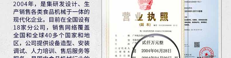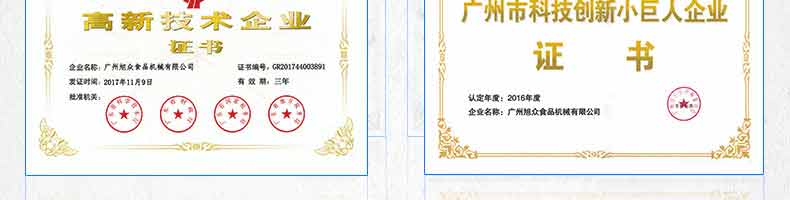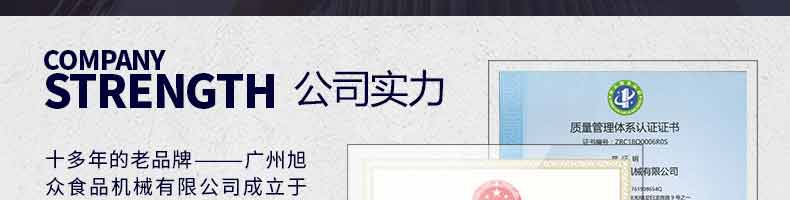 廣州旭眾食品機械有限公司是一家集科研開發,生產設計,營銷服務為一體的現代化生產企業?,F代化生產車間,精湛制造技術,所產機械歷經市場重重考驗,不斷贏得海內外客戶的贊譽。