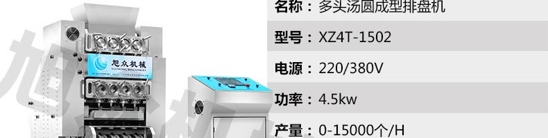 XZ4T-1501多功能搓圓擺盤機/湯圓機,本機只要將面團放入進料口,開機便可自動搓圓、成型的設(shè)備,一次性成型四次產(chǎn)品,制品不易變形,工作效率高,相當于15-20個工人同時手工制作湯圓,并可自動排盤,真正的低投入、高收效、省錢省工。